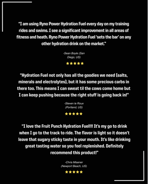 Fuel yourself like our Ryno Power pro athletes with this advanced electrolyte formula that will keep you going strong for hours! Whether you’re at the gym or on a ride, packed with BCAA's, Glutamine, Complex Carbohydrates, & D Ribose, this delicious drink makes every minute of training feel like your first. HYDRATION FUEL uses all-natural flavors, natural colors, & 100% organic sugar so it works great & is also extremely good for you too!