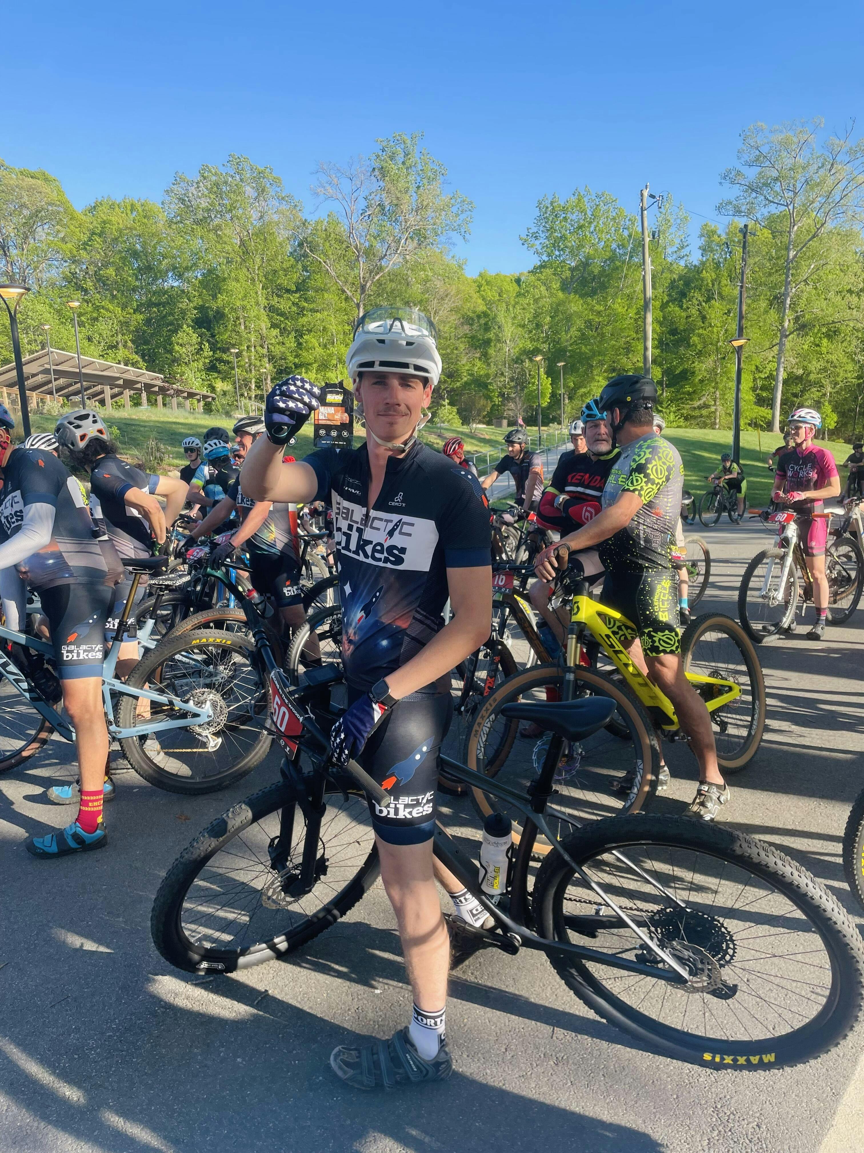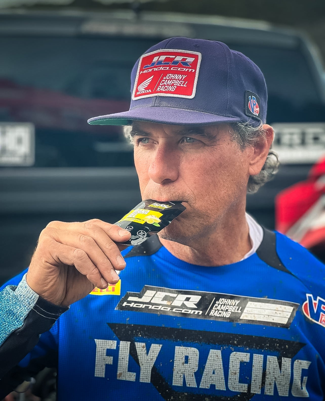 Road Cyclist eating a gel