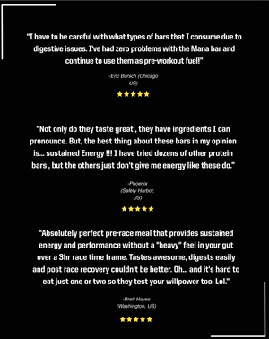 Convenient:Mana Bars are portable and easy to carry, making them a convenient snack option for athletes on the go. They can be eaten before or after a workout or as a mid-day snack to help maintain energy levels.